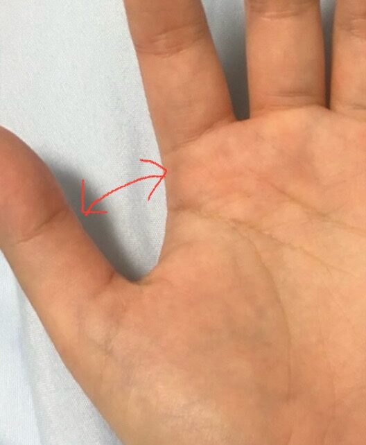親指と人さし指の開き方が90度未満